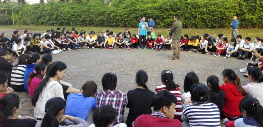 接下來的比賽項目是報數(shù),看似很簡單的事情,但過程總是因為某個人開小差、不用心等導(dǎo)致團隊失敗,失敗團隊的隊長承擔(dān)100%責(zé)任,俯臥撐從5個到10個到20個到40個再到80個,每一輪比賽輸?shù)膱F隊隊長承擔(dān)的俯臥撐是上一輪的雙倍。比賽氛圍開始還很比較輕松,兩輪后大家開始緊張了,到第五輪時,受罰的隊長苦苦支撐著、一次又一次爬起、趴下、再爬起時,全體員工沉默了。隨后一名又一名員工趴下與隊長一起受罰,一起承擔(dān),最后其它團隊的所有成員自愿自發(fā)全部圍繞在受罰隊長身邊一起受罰、承擔(dān),給受罰隊長支持、加油!
