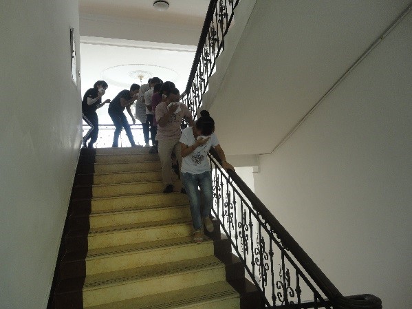 上午9點30分,演練正式開始:公司辦公樓一樓大廳意外起火,濃煙四起,消控中心發(fā)現(xiàn)火情后立刻向安全生產(chǎn)負責人匯報情況,安全生產(chǎn)負責人收到火情后第一時間啟動消防應(yīng)急預案,通知滅火行動組人員趕赴現(xiàn)場控制火情,并通知疏散引導組迅速組織辦公樓內(nèi)所有人員逃生。疏散引導組組長接到指令后,馬上通知辦公樓內(nèi)所有員工向辦公樓外撤離,安撫員工情緒,提醒大家用濕毛巾掩住口鼻,弓身沿樓梯扶手排成一列有序向外疏散逃生。
