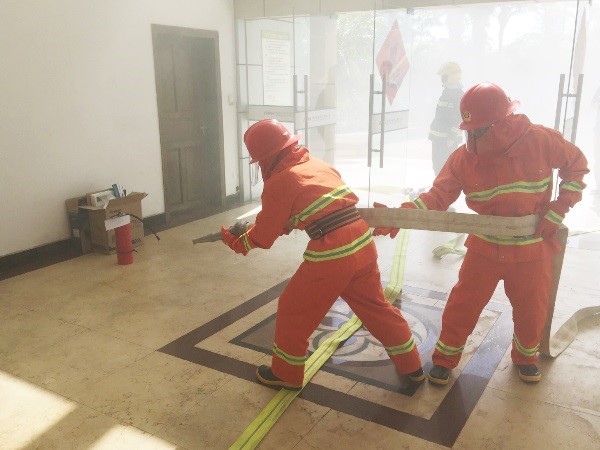 此次演練意在檢驗消防應(yīng)急組織機構(gòu)的運行狀況,滅火行動組對滅火器、室內(nèi)消火栓等消防器材的熟練掌握程度,