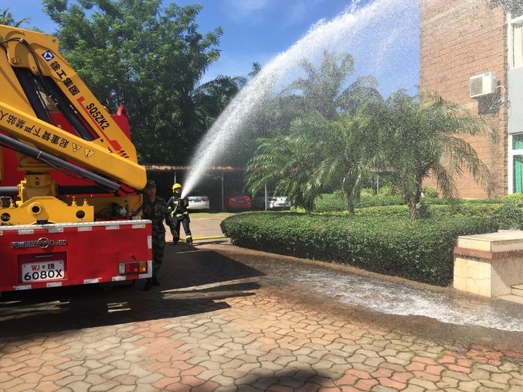 9點40分,金盤消防中隊2輛消防車和9名消防官兵抵達現(xiàn)場,迅速展開滅火和救援行動。在消防官兵的奮勇?lián)岆U下,火情迅速得到了控制,并被徹底撲滅,被困員工也被安全救出,演練就此結(jié)束。