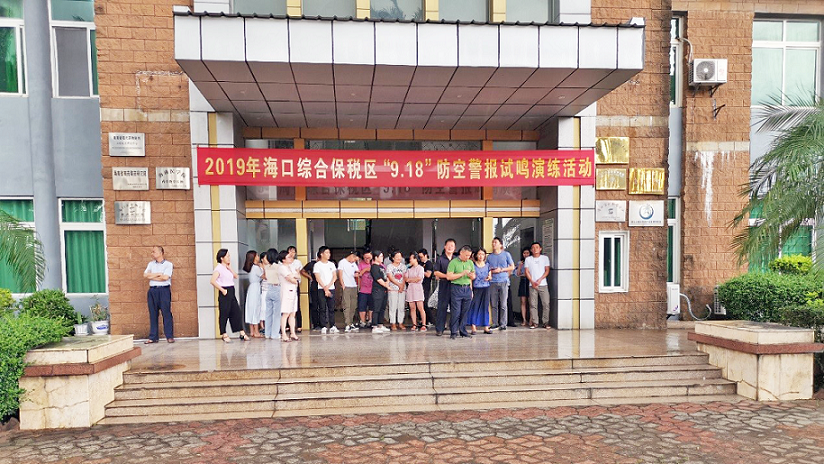 為增強駐區(qū)企業(yè)員工的國防觀念和防空意識,了解和識別防空警報信號,掌握防空襲疏散隱蔽知識,海口綜合保稅區(qū)聯(lián)合我司開展“九一八”防空警報試鳴演練活動。此次活動由綜保區(qū)統(tǒng)一指揮,我司負責具體實施,社事局局長黎晨主持,財政局局長王振武、園管局局長馬慶禮、原紀檢監(jiān)察室主任李軍、社事局副局長李建玲、經(jīng)發(fā)局副局長歐文、綜保倉儲物流公司、保安部、市中醫(yī)院等領導及相關(guān)部門負責人參加觀摩演練。